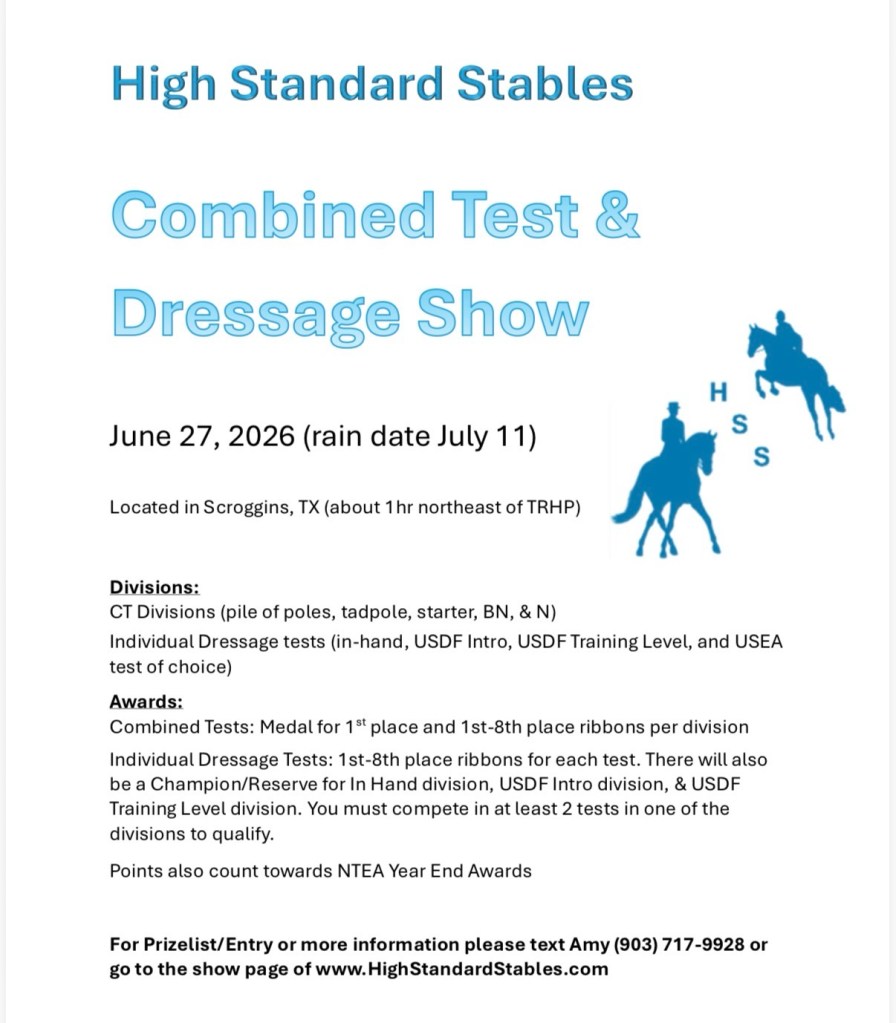 The East Texas Hunter Jumper Club would like to announce updates to the 2026 show season.
